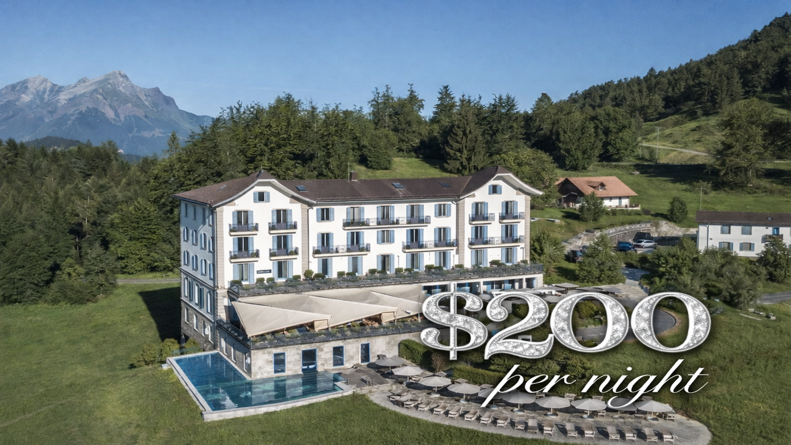Overlooking the Swiss Alps, this hotel offers a cool alpine climate with snowy winters and peaceful mountain scenery, and despite looking like one of the most elite hotels in Europe, it can actually be relatively cheap in low season with prices starting around $200 per night.