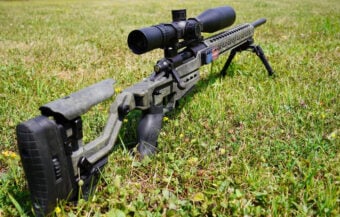 Set up in a precision chassis with custom ghillie-style Cerakote, this lightweight and fast round stays flat past 100 yards with minimal recoil. A favorite for shooters who want accuracy without punishment.