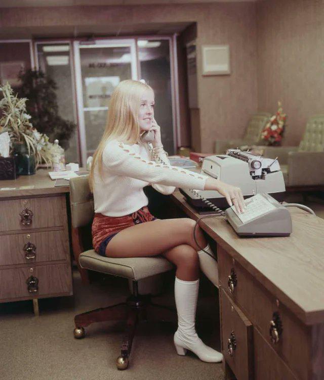 17. A young secretary demonstrating the cutting-edge office tech of the time