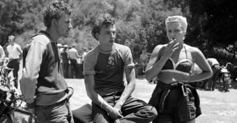A group of young people pose beside their motorcycles on the beach, sharing the same attitude and way of life. The bikes appear as a symbol of presence, belonging, and unity among them. For the time, they represented being unique and cool.