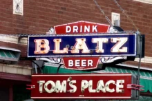 “Blatz” might sound like one of Homer Simpson’s euphemisms, but in reality, it was a Milwaukee-brewed beer from 1851 until 1951 when Pabst Blue Ribbon bought it. These days, the Blatz beer label is under Milwaukee’s Miller Brewing Company’s purview, making vintage signs of the brand valuable relics.