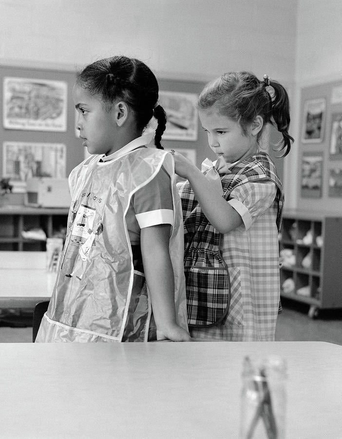5. School Kids Helping Each Other Tie on Aprons