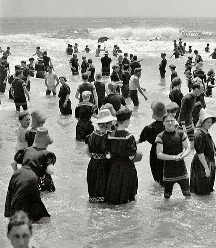 1. Colorized Image of a Crowded Day at the Beach, 1908