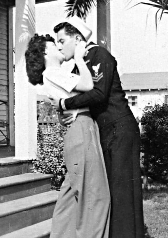 13. A Sailor Plants a Smooch on His Lady After Returning Home From WWII in Los Angeles, 1945