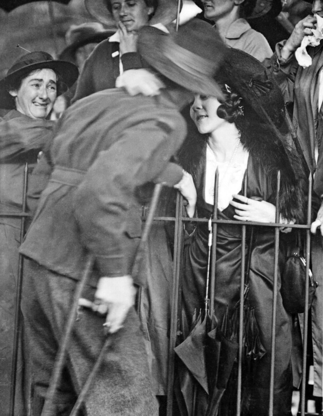 19. A Wounded Soldier on Crutches Greets His Sweetheart After Returning Home From WWI in Sydney, Australia, 1919