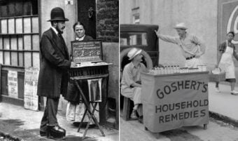 From makeshift carts selling homemade remedies to ice cream stands and balloon sellers, here are vintage snapshots that capture the hustle (and soul) of street vending from the 1800s to the present.